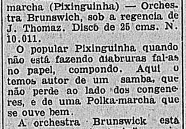 A nota foi dada pelo jornal Correio da Manhã (RJ), em 9 de fevereiro de 1936.