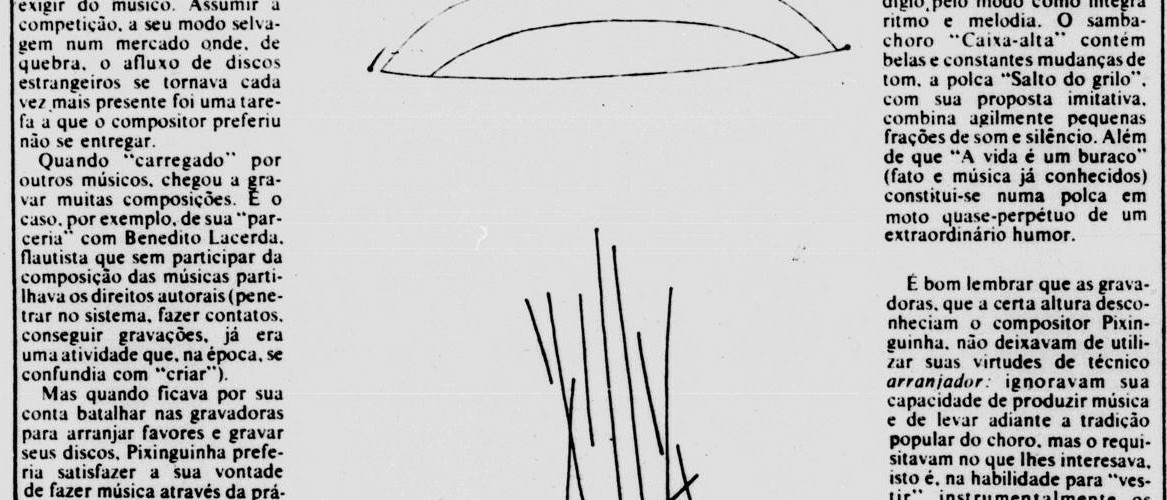 1975 – A recém-criada Gravadora Discos Marcus Pereira, na contramão da produção fonográfica brasileira, que então era impulsionada pela música estrangeira, grava o LP ‘Pixinguinha de novo’, com interpretações dos flautistas Altamiro Carrilho e Carlos Poyares. O disco recebeu uma nota do crítico José Miguel Wisnik ilustrada por Cássio Loredano, publicada na ‘folha alternativa’ Movimento Cena Brasileira: subúrbio carioca.