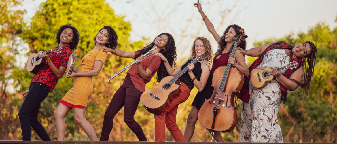 A nova geração de mulheres-musicistas-populares está repleta de virtuosas choronas e a seção Podcasts da Revista do Choro destaca hoje os dois anos do REGIONAL SEGURA ELAS! Integrado pelas instrumentistas Ana Rodrigues (violão 6 cordas), Iza do Cavaco (cavaco centro), Karol Cass (violoncelo), Any Lopes (flauta transversal), Nathália Marques (pandeiro) e Pati Barcellos (cavaco solo), o grupo se formou em 2017, através de uma oficina de prática de conjunto de choro voltado para mulheres organizado pelo violonista e professor da Escola de Música de Brasília (EMB), Lucas de Campos.