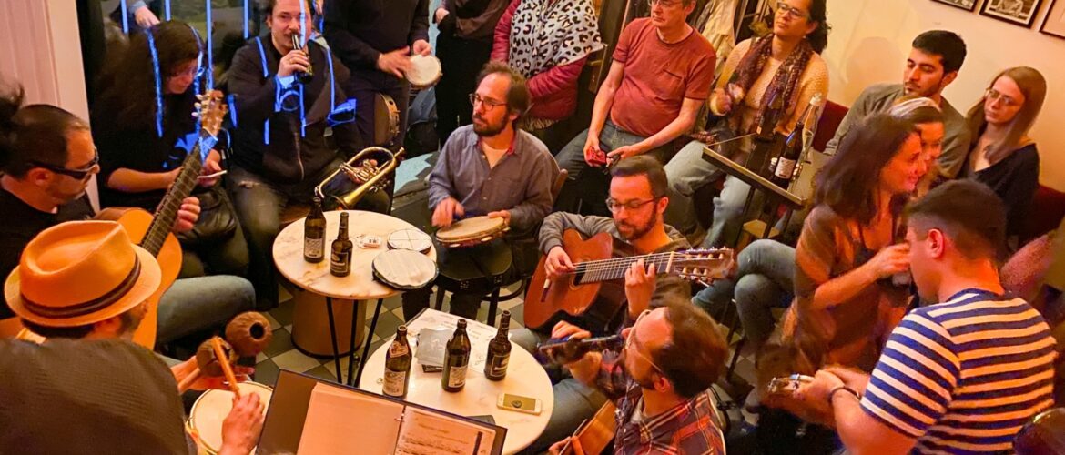 A coisa se intensificou depois de alguns ocorridos. O primeiro deles, durante a pandemia, foi um encontro inusitado por conexões do Instagram com quem é hoje, um dos meus grandes parceiros musicais: João Poeta (João Araújo), poeta, compositor, violonista e pandeirista de Recife. A sintonia foi imediata. João também esteve em algumas oficinas promovidas pela EPM e vem da mesma escola que eu. Além do mais, tem vontade e energia para ajudar na organização da roda. Sempre o primeiro a chegar e o último a sair. A segunda, foi um festival de Choro organizado pelo Bavaschoro no começo de 2022. Nesse festival, além de diversos workshops e apresentações, terminamos com uma roda maravilhosa. No final da roda, João chegou pra mim e disse: “rapaz, o trem do Choro está passando em Munique, e não podemos perder essa oportunidade”. Decidimos embarcar!