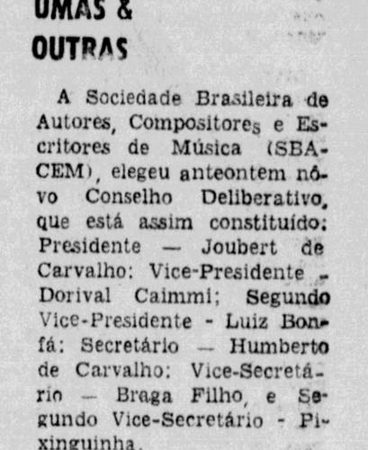 Na década de 1960, Pixinguinha foi subsecretário da Sociedade Brasileira de Autores, Compositores e Escritores de Música (SBACEM).