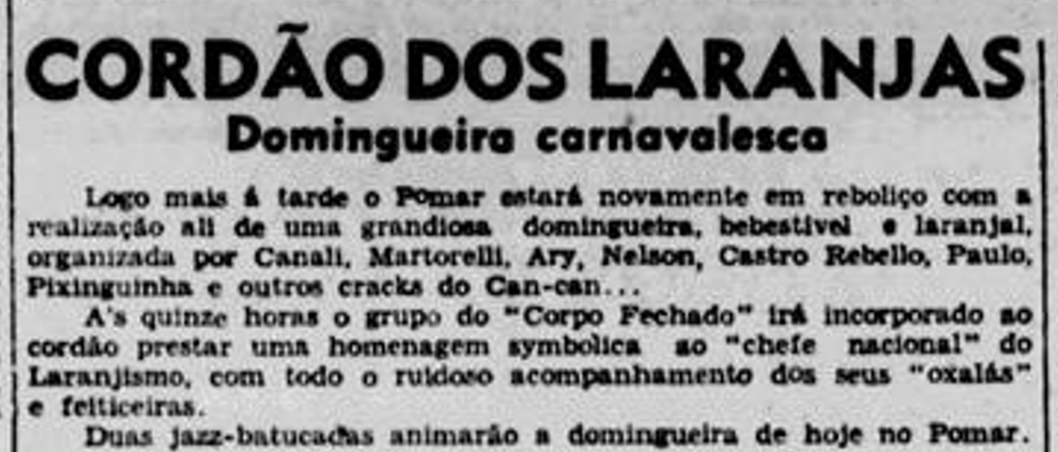 Na série Pixinguinha no Carnaval, compartilho hoje com vocês uma notinha publicada em 1935 no jornal A Nação sobre a participação de Pixinguinha na organização de um baile de carnaval do Cordão dos Laranjas. Mas… peraí! Laranjas? Logo o Pixinga? srsrs